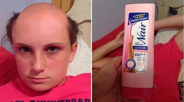 เป็นเรื่องราวของ Kayla Connors หญิงสาวจากรัฐ Massachusetts สหรัฐอเมริกา โดยเธอได้โพสต์ภาพของหญิงสาวคนหนึ่งที่มีสภาพผมแหว่งไปเกือบครึ่งหัวกับภาพของครีมกำจัดขน ซึ่งเธออ้างว่า น้องสาวของเธอเข้าใจผิดคิดว่าครีมกำจัดขนเป็นแชมพู...!!