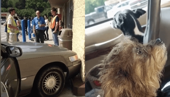 ในช่วงฤดูร้อนถือได้ว่าเป็นที่อันตรายต่อสภาพแวดล้อมเป็นอย่างมากโดยเฉพาะภายในรถยนต์ จึงไม่เหมาะเป็นอย่างยิ่งถ้าหากว่าเราจะปล่อยสุนัขหรือสัตว์เลี้ยงชนิดอื่นๆทิ้งเอาไว้โดยเฉพาะเมื่อมีเหตุจำเป็นต้องจอดรถกลางแดดเอาไว้นานๆ แต่อยู่ดีๆก็มีเหตุการณ์สุดแปลกเกิดขึ้นที่เมือง Wayne รัฐ Virginia เมื่อมีเจ้าหาสองตัวต้องติดแหง่กอยู่ในรถกลางแดด โดยที่เจ้าของออกไปทำธุระ แต่ยังดีที่เจ้าของได้เปิดเครื่องทิ้งเอาไว้ แต่ไม่รู้ทำไมอยู่เจ้าหมาสองตัวนี้ก็คิดแผนสุดเกรียนขึ้นมา โดยการปลดเกียร์และเหยียบคันเร่งขับรถออกไปชนกำแพงซะงั้น แถมยังเกือบชนพนักงานร้านสะดวกซื้ออีกด้วย