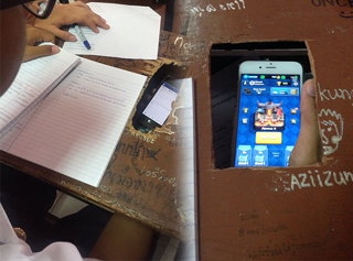 ก็ยังอุตส่าห์มีช่องทางให้เล่นกันจนได้ สำหรับนวัตกรรมโต๊ะแบบใหม่ที่ดัดแปลงมาเพื่อการณ์นี้ของเหล่านักเรียนทั้งหลาย ที่จัดว่ามีความพยายามในการนำโทรศัพท์มาเล่นในเวลาเรียนซะเลย ให้มันมีความพยายามในการเรียนให้ได้แบบนี้มั่งก็ดีนะหนู ๆ หรือใครสนใจก็ลองหลบคุณครูทำดูก็ได้นะเออ