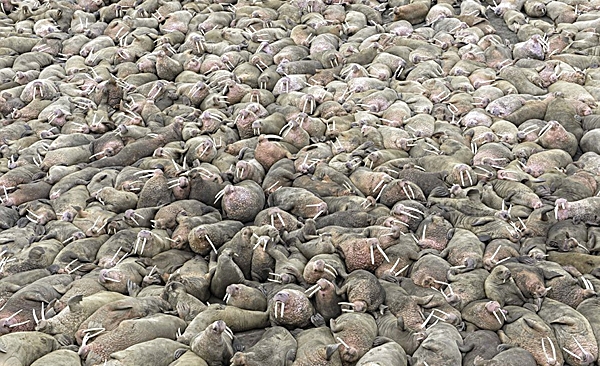 นับว่าเป็นปรากฎการณ์แปลกประหลาดทางธรรมชาติ โดยปกติแล้ววอลรัสเป็นสัตว์สังคมอาศัยอยู่บริเวณขั้วโลกเหนือ เมื่อเห็นแบบนี้เขาก็เปลี่ยนใจไม่ถ่ายภาพธรรมชาติแล้ว แต่หันมาถ่ายภาพเหล่าวอลรัสที่นอนเกลื่อนกลาดแทน