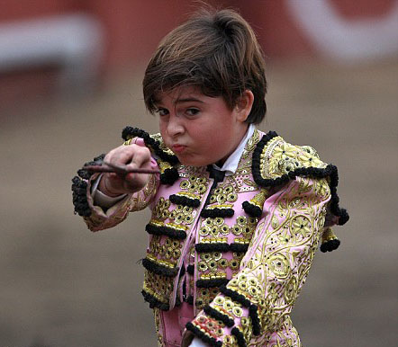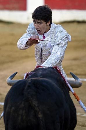 คมชัดลึก :"ไฆ โร่ มิเกล ซานเชส อลองโซ "มาทาดอร์วัย 16 ปีของสเปนสังหารกระทิง 6 ตัวภายในเวลา 2 ชั่วโมงครึ่ง ของบ่ายวันเสาร์ ต่อหน้าผู้ชมที่มีจำนวน 2 ใน 3 ของที่นั่งขนาดความจุ 5,000 ที่นั่งในเมืองกาเซเรส ภูมิภาคเอ็กซเตรมาดูร่า ทางตะวันตกเฉียงใต้ของสเปน