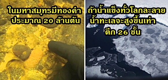 2. ในมหาสมุทรมีทองคำประมาณ 20 ล้านตัน