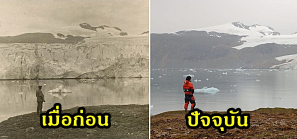 Christian Åslund ช่างถ่ายภาพชาวสวีเดนได้รวบรวมภาพถ่ายธารน้ำแข็งใน Svalbard, Norway เมื่อ 100 ปีก่อน ตั้งแต่ปี 1900 จากนั้นเขาก็ตามไปถ่ายภาพสถานที่ในภาพนั้นตอนปี 2002 เพื่อเปรียบเทียบให้เห็นความแตกต่างของสภาพอากาศที่เปลี่ยนไป หลังผ่านไป 100 ปี และนี่คือภาพความเปลี่ยนแปลงที่เขาบันทึกได้