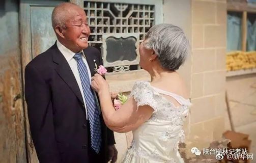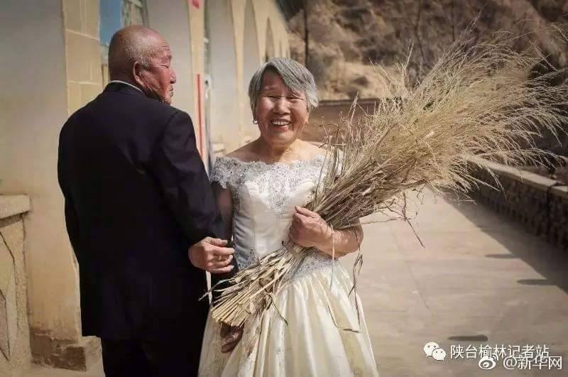 เมื่อไม่นานมานี้มีนักศึกษาชาวจีนกลุ่มเล็กๆ กลุ่มหนึ่งได้ถ่ายภาพแต่งงานให้กับตายายในชนบทของอำเภอหมี่จือ มณฑลส่านซี และภาพชุดนี้นี้ก็ถูกชาวเน็ตแชร์ออกไปเป็นจำนวนมาก คุณตาในภาพมีอายุ 84 ปี ส่วนคุณยายอายุ 80 ปี ทั้งคู่แต่งงานกันมานาน 63 ปี และการถ่ายรูปแต่งงานในครั้งนี้ถือเป็นครั้งแรกในชีวิตของทั้งสองท่าน