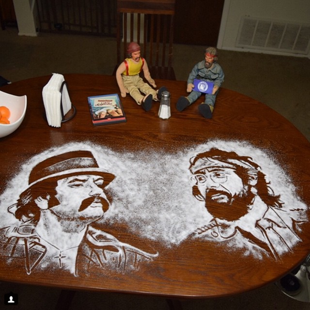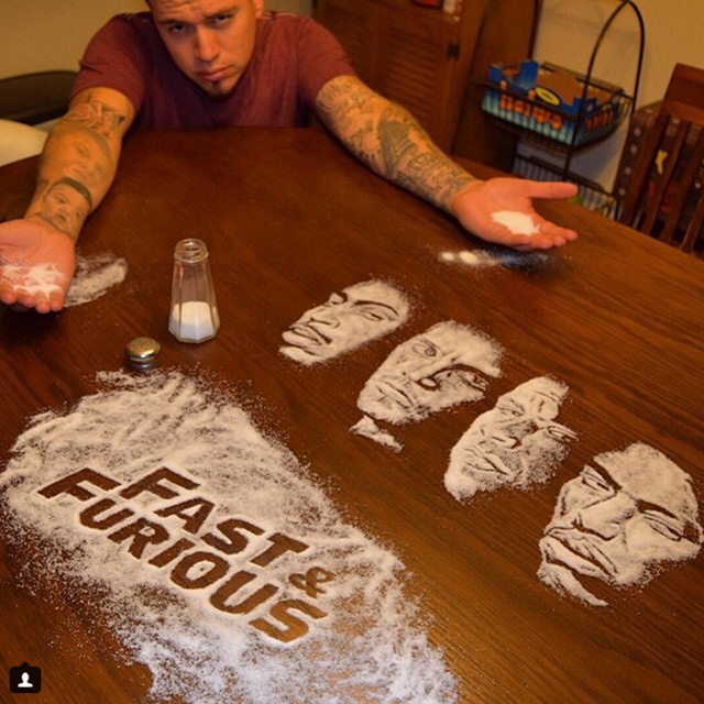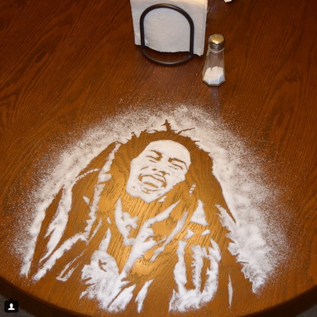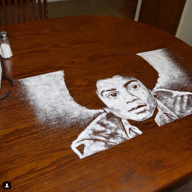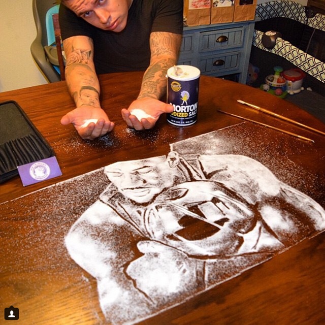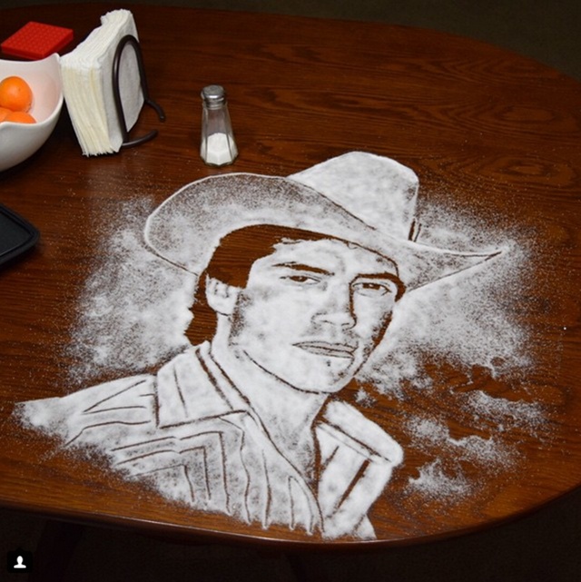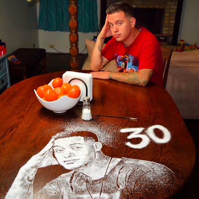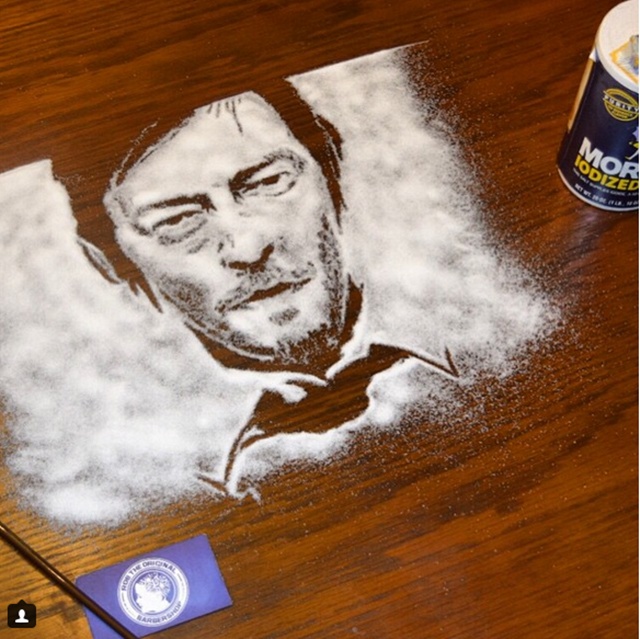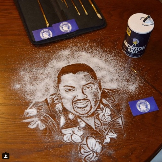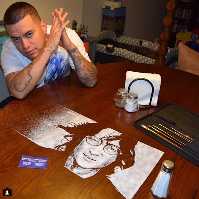 ศิลปินหนุ่มวัย 30 ปี ชาวเท็กซัสคนนี้ใช้เกลือป่นโรยลงไปบนโต๊ะไม้สีเข้มเพื่อสร้างสรรค์ภาพพอร์ทเทรตของคนดังมากมายเช่น LeBron James, Snoop Dogg และ Michael Jackson จากนั้นก็อัพโหลดผลงานลงบน Instagram