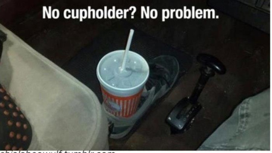 5. ใช้รองเท้าเป็นที่วางแก้วในรถได้