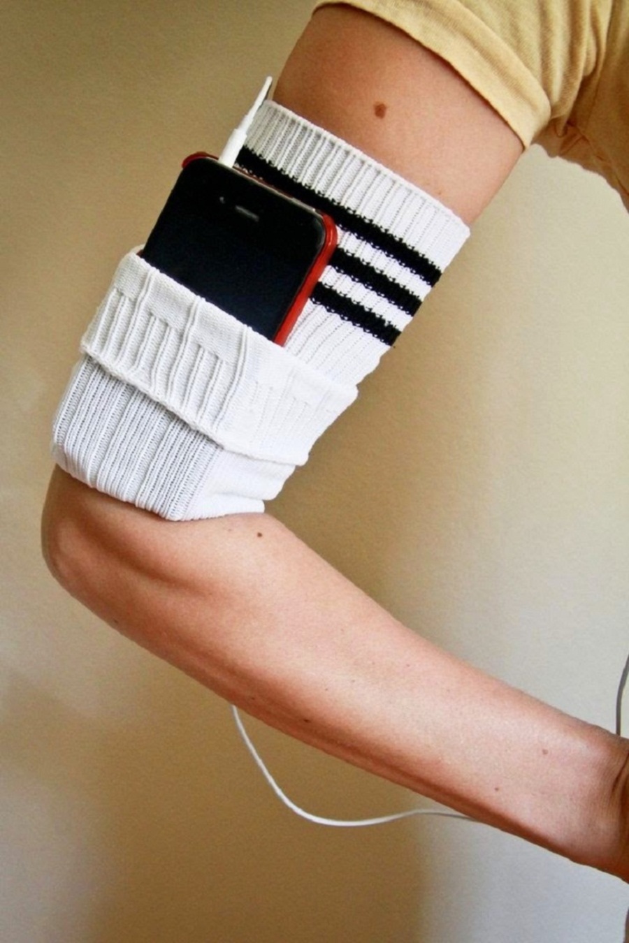 7. ใช้ถุงเท้าเป็นที่วางโทรศัพท์ติดกับแขนตอนออกกำลังกายได้