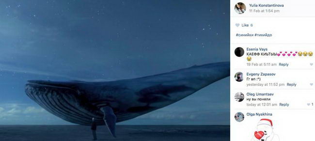 ยูเลีย คอนสแตนติโนวา คือเด็กหญิงอายุ 15 ที่โพสต์ข้อความสุดท้ายว่า “End” หรือ “จบ” พร้อมกับรูปวาฬสีน้ำเงิน