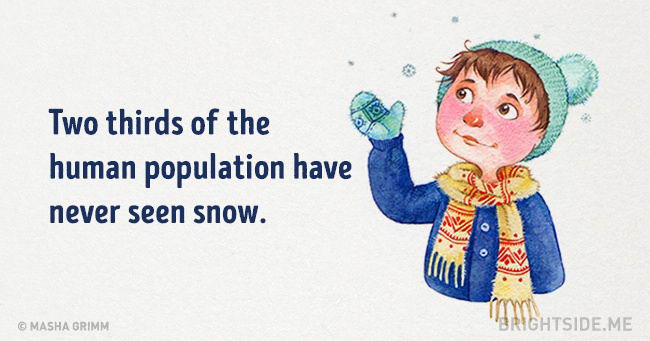 19. ผู้คนจำนวน 2 ใน 3 บนโลกนี้ ไม่เคยเห็นหิมะ