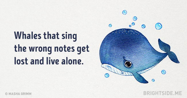 12. วาฬร้องเพลงได้ วาฬที่ร้องเพลงไม่เข้ากับตัวอื่น จะหลงทางและต้องอยู่ตัวเดียวลำพัง