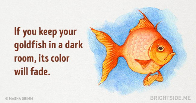 2. ถ้าคุณเลี้ยงปลาทองไว้ในห้องมืด สีของมันจะจางลง
