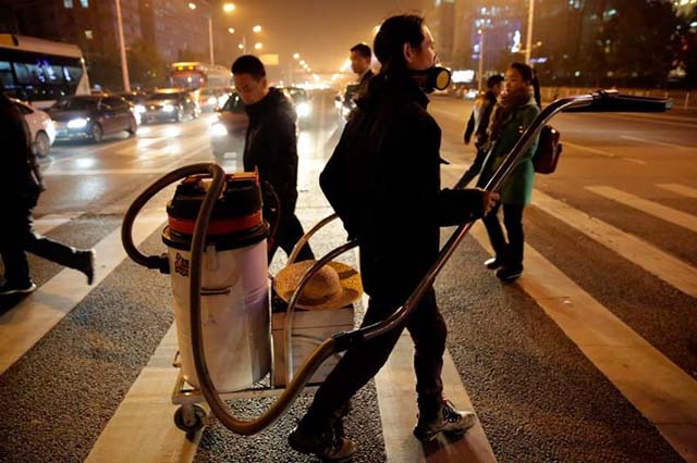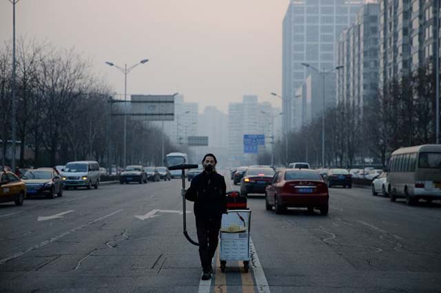ชาวปักกิ่งต้องทนทุกข์กับสภาพฝุ่นควันเช่นนี้นานนับปีเนื่องจากการเผาถ่านหินในโรงงานอุตสาหกรรมทางตอนเหนือของเมือง โดยแพทย์ประมาณการว่ามีผู้เสียชีวิตกว่า 4,000 คนทุกวันเนื่องจากมลพิษทางอากาศนี้