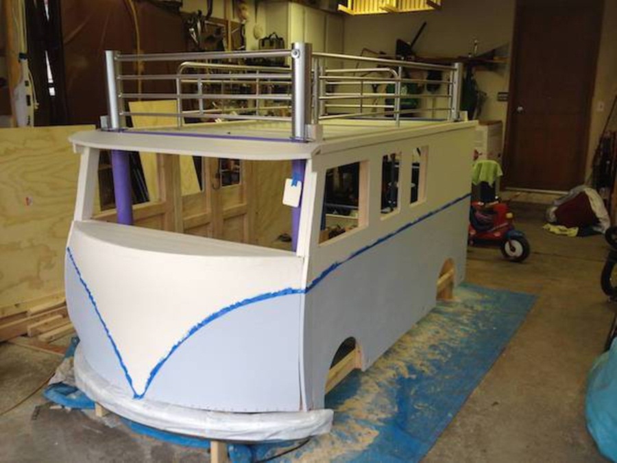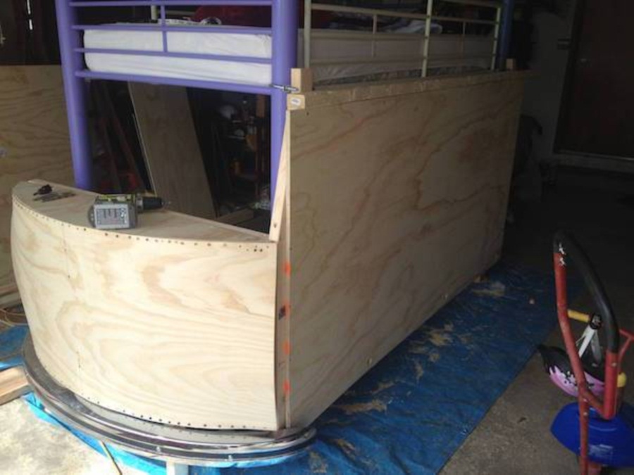 เนื่องจากเขามีงบประมาณไม่มาก เขาเลยต้องจำกัดงบในการสร้างมากๆ แล้วเขาก้พบโครงเตียงที่วางขายอยู่ในราคาแค่ 25 เหรียญเท่านั้น ดังนั้นเขาจึงซื้อมันมา จากนั้นก็ใช้วัสดุที่มีอยู่รอบๆ บ้านหรือโรงรถมาใช้ทำเตียง