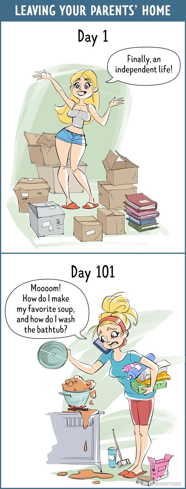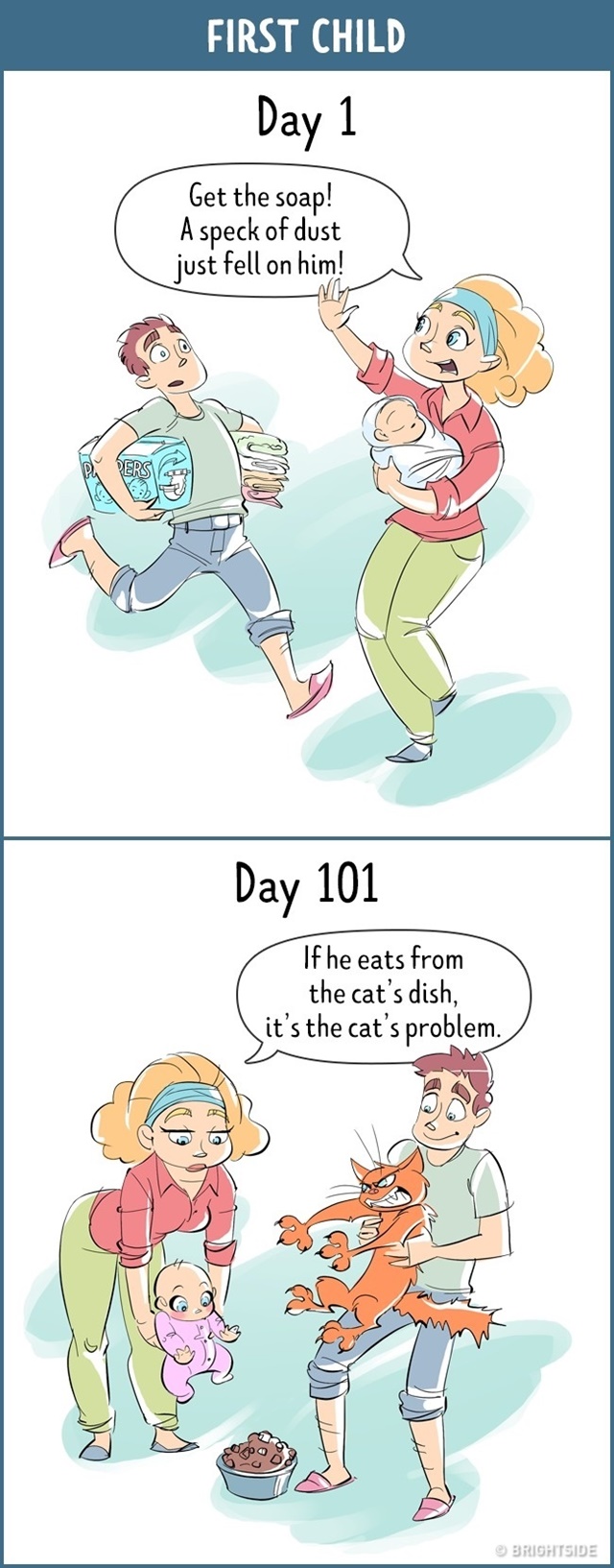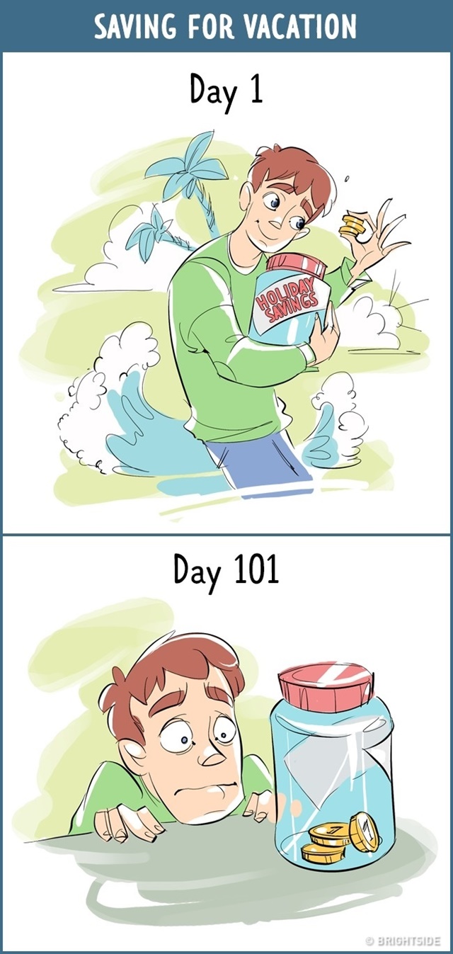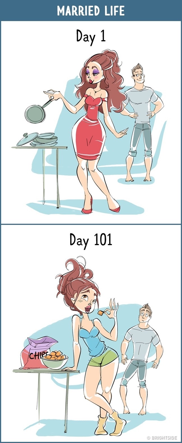 และนี่คือ 13 ภาพการ์ตูนสะท้อนชีวิต ของวันแรกที่แสนตื่นเต้น VS หลังจาก 100 วันอันน่าเบื่อหน่าย