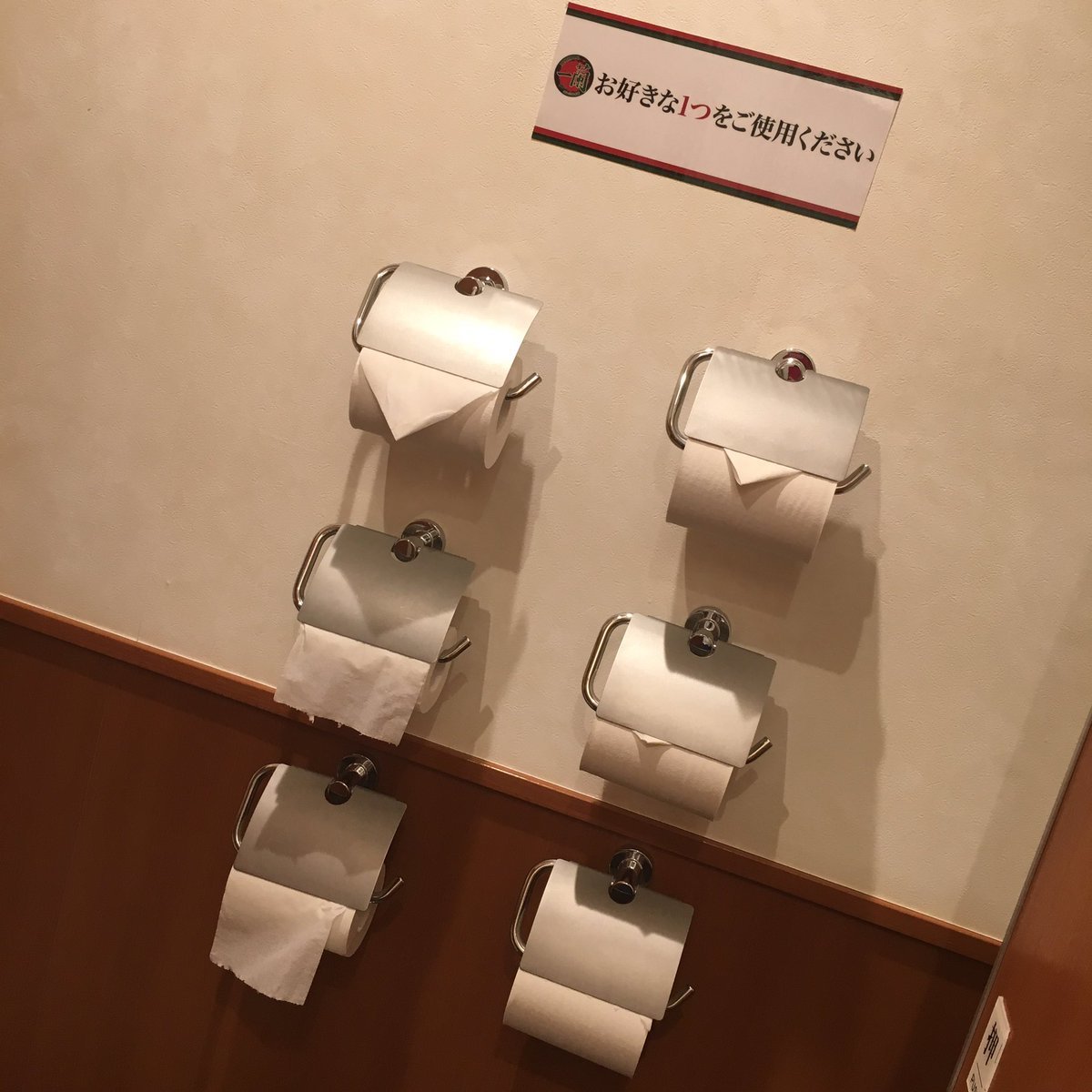 แบบนี้ก็มีด้วยเหรอ ? กับการดีไซน์ห้องน้ำในร้านราเมน Ichiran ในทุกสาขาของประเทศญี่ปุ่น ด้วยการนำเอาม้วนที่ใส่กระดาษทิชชู่แบบนี้มาติดข้าง ๆ ฝาผนังห้องน้ำอย่างในรูป เนื่องด้วยทางร้านได้เพิ่มความสะดวกให้ลูกค้าและทำให้พวกเขามั่นใจได้ว่าจะไม่เกิดเหตุการณ์ทิชชู่หมดระหว่างทำธุระอย่างแน่นอน อีกทั้งทางลูกค้ายังสามารถดีไซน์ความเผ็ดในชามราเมนของตัวเองได้อีก จึงทำให้ต้องเตรียมห้องน้ำด้วยบริการทิชชู่ในปริมาณเต็มฝาผนังอย่างที่เห็น