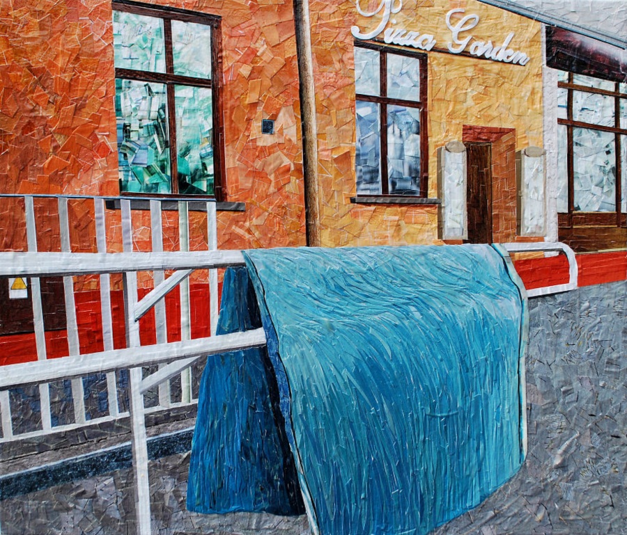 และดูเหมือนว่าเขาจะตกหลุมรักที่นี่มาก เพื่อเป็นการแสดงให้เห็นถึงความสวยงามของเมืองนี้เขาจึงสร้างงานศิลปะขึ้นมาโดยใช้กระดาษและกาวมาทำเป็นภาพ แต่มันแปลกตรงที่ใครๆ เห็นก็พากันเข้าใจผิดคิดว่าเป็นภาพวาดสีน้ำมัน ถ้าไม่มองใกล้ๆ ไม่มีทางรู้แน่นอน เห็นฝีมือของเขาแล้วคุณจะไม่แปลกใจว่าทำไมเขาถึงหลงรักเมืองนี้...!