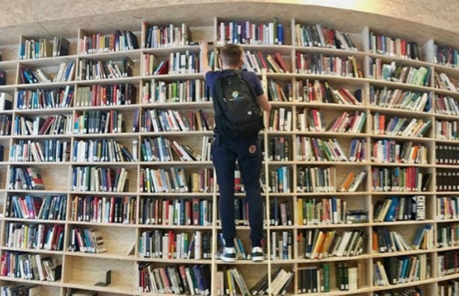 มีโถงหรูหราในห้องสมุดที่จัดเตรียมไว้สำหรับให้นักเรียนมาทำงานรวมกันเป็นกลุ่ม