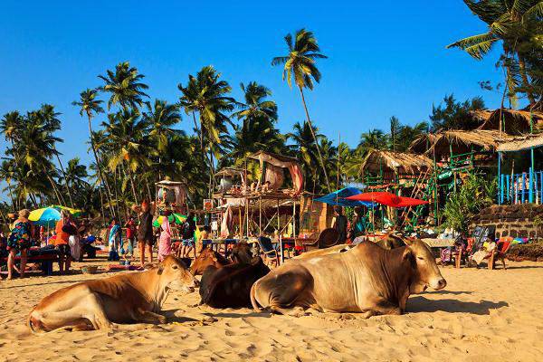 ชาย หาด Goa ท่ามกลางชายหาดแห่งนี้ นอกจากคนที่มานอนอาบแดดแล้ว ยังคงมีสัตว์อีกหนึ่งชนิดที่ก็ชอบอาบแดดเหมือนกัน นั่นก็คือ ฝูงวัว ศักดิ์สิทธิ์ ที่คนท้องถิ่นเลี้ยงไว้ และปล่อยให้มันเดินเล่นริมชายหาดตามสบาย