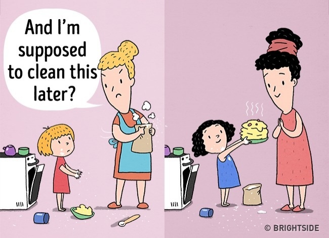 ดังนั้น แทนที่จะบนเรื่องห้องรก พ่อแม่กลับจะปล่อยให้เด็ก ๆ ทำอะไรแบบที่ชอบ แล้วก็ค่อย ๆ ใช้เวลาอธิบายว่าทำไมถึงต้องมีระเบียบ