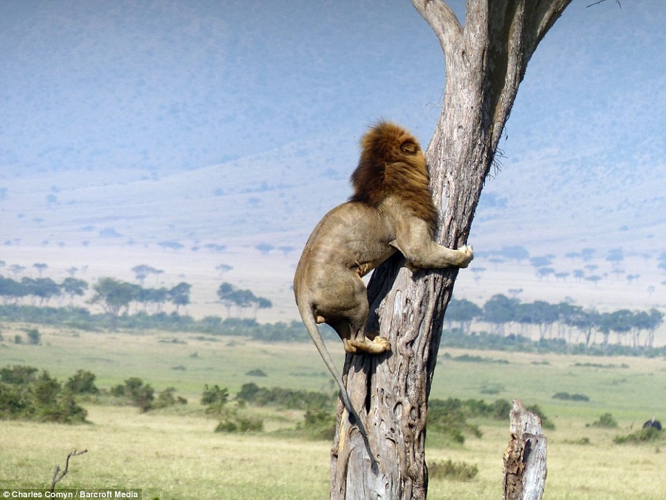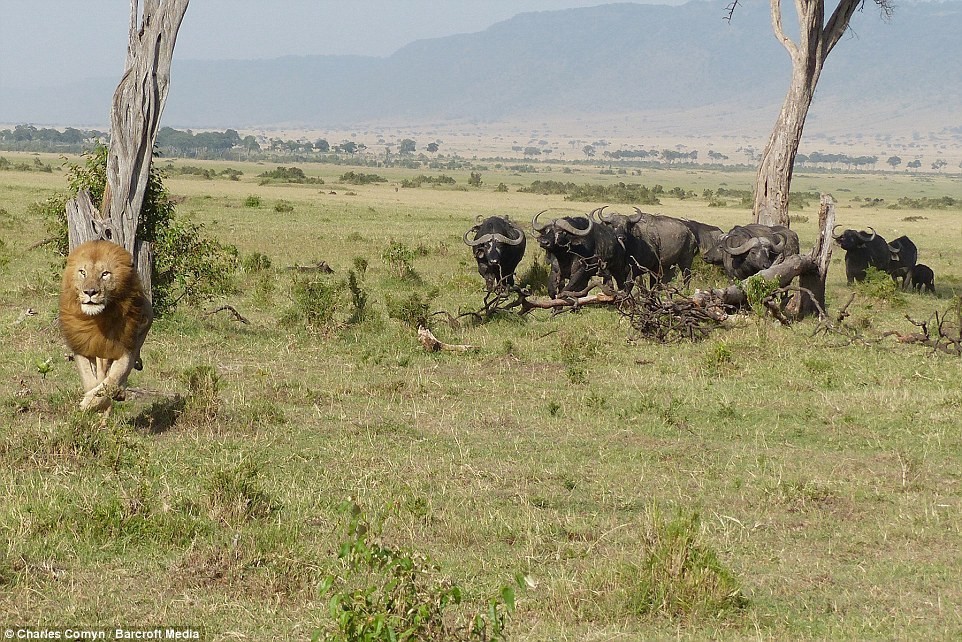 บอกเลยว่า... ถึงจะเป็นเจ้าป่าก็กลัวตายเหมือนกัน !! เมื่อเจ้า สิงโต ตัวนี้ ตัดสินใจปีนขึ้นไปอยู่บนต้นไม้ เพื่อหนีตาย หลังจากที่ถูก ควายป่า ฝูงใหญ่กำลังตามล่า ซึ่งภาพถ่ายเหล่านี้เป็นของอดีตนายทหาร นามว่า Charles Comyn ที่ถ่ายไว้ได้ขณะที่เขาไปท่องป่า Maasia Mara ในประเทศ Kenya