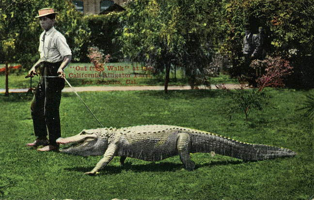 เมื่อก่อนเคยมีมาแล้ว !? เปิดภาพย้อนวันวาน เมื่อ 100 กว่าปีก่อน กับภาพฟาร์มจระเข้แห่งหนึ่ง ที่ตั้งอยู่ในชุมชนลินคอล์นไฮจ์ นครลอสแอนเจลิส ซึ่งก่อตั้งโดย ฟรานซิส เออร์เนสต์ และเจ้าโจ แคมป์เบลล์ จระเข้คู่หู โดยฟาร์มจระเข้แห่งนี้ จะปล่อยให้ผู้คนได้เข้าไปใกล้ชิดกับจระเข้ตัวเป็น ๆ ไม่ว่าจะเป็นการให้อาหาร การพาไปเดินเล่น หรือแม้แต่การนั่งกินข้าวท่ามกลางฝูงจระเข้นับสิบ โดยที่พวกมันไม่ทำร้ายผู้คนเลย เพราะจระเข้ในฟาร์มแห่งนี้ เป็นพันธุ์แอลลิเกเตอร์ (Alligators) ที่ไม่มีนิสัยโหดร้าย