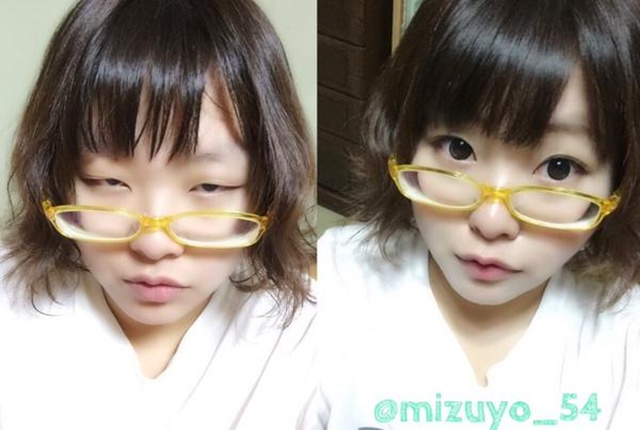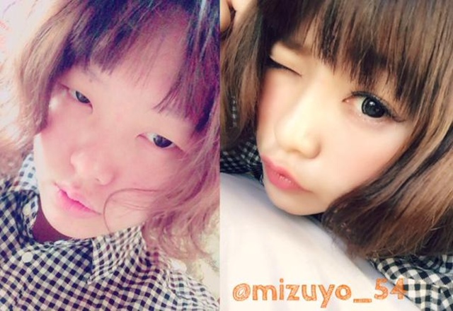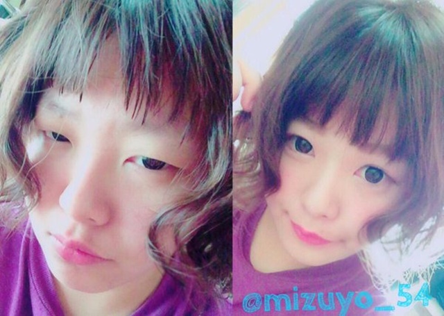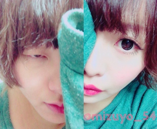 @mizuyo_54 ได้ทวีตภาพพร้อมข้อความว่า “นี่เป็นภาพการแต่งหน้าครึ่งเดียวของฉันภาพแรกที่เผยแพร่ลงในนี้ ถึงแม้ว่าฉันจะไม่ได้แต่งหน้าเก่งอะไรมากมายแต่ฉันก็อยากให้ทุกคนเห็นว่าเราไม่จำเป็นต้องทำศัลยกรรมเพื่อเปลี่ยนแปลงใบหน้าของตัวเอง”