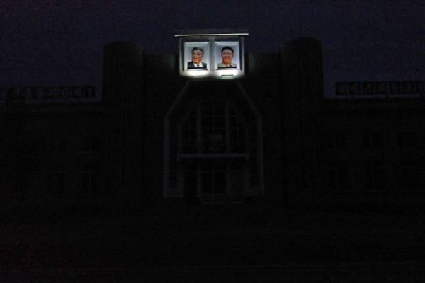 แม้แต่ตอนกลางคืน ภาพถ่ายของท่านผู้นำทุกที่จะถูกฉายแสงให้ดูโดดเด่นกว่าสิ่งอื่นใดในเมือง