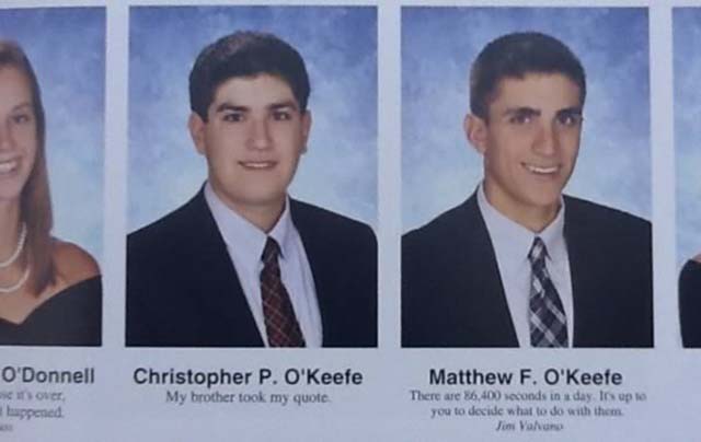 ตามธรรมเนียมของโรงเรียนในสหรัฐอเมริกา เมื่อใกล้จบการศึกษาจะมีการถ่ายรูปนักเรียนแต่ละคนพร้อมเขียนคติประจำใจ หรือคำพูดเด็ดๆ ที่ชื่นชอบ เพื่อบันทึกความทรงจำไว้ในหนังสือรุ่น นักเรียนแต่ละคนก็มักจะมีไอเดียแปลกๆ โผล่มาให้เราเห็นกันบ่อยๆ แต่ความฮายิ่งทวีคูณเป็นสองเท่า เมื่อฝาแฝดร่วมมือกันคิดสร้างสรรค์คำกล่าวฮาๆ