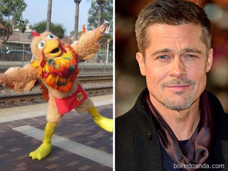 Brad Pitt - คนแต่งชุดมัสคอตในร้านอาหาร