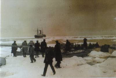 แต่เมื่อพวกเขาย้อนกลับมาอีกครั้ง กลับพบว่าเรือได้ล่องออกไปไกลแล้ว จากนั้นมันก็กลับเข้าไปติดในน้ำแข็งอีกคราวนี้ลูกเรือจึงตัดสินใจรออยู่ไม่ไกล เพื่อจะกู้เรือคืน