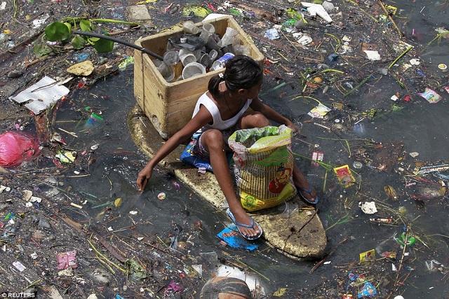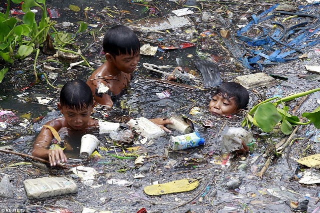 ที่มา http://www.dailymail.co.uk/news/article-3148193/Beneath-poverty-line-Children-Philippines-risk-lives-sifting-floating-rubbish-filthy-rivers-material-sell-survive.html?ito=social-facebook