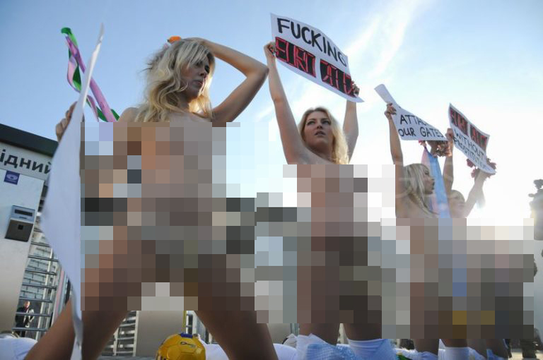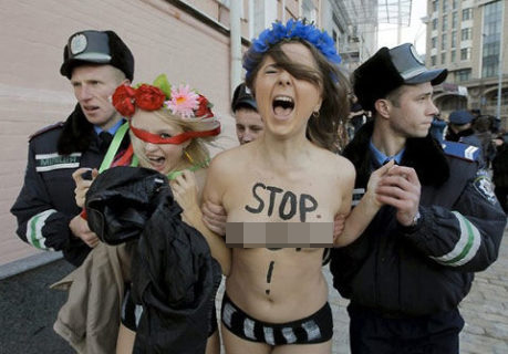 กลุ่มสาวยูเครนเปิดหน้าอกประท้วงตำรวจ หลังไม่เห็นด้วยกับการอุทธรณ์สิทธิของสตรี ถือว่าแต่ละคนใจเด็ดมากที่กล้าทำอย่างนี้