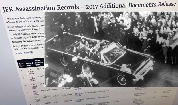เมื่อวันที่ 27 ต.ค. เอพีรายงานความความคืบหน้าการเปิดแฟ้มลับคดีลอบสังหารประธานาธิบดีจอห์น เอฟ เคนเนดี หรือเจเอฟเค เมื่อปีค.ศ.1963 หรือพ.ศ. 2506 ตามการอนุมัติของประธานาธิบดีโดนัลด์ ทรัมป์ ผู้นำสหรัฐอเมริกาคนปัจจุบัน ว่าหอจดหมายเหตุแห่งชาติสหรัฐปล่อยเอกสาร 2,800 หน้าออกมาแล้ว แต่บางส่วนกลับถูกสกัดไว้ในนาทีสุดท้าย ตามคำขออุทธรณ์ของซีไอเอและเอฟบีไอ
