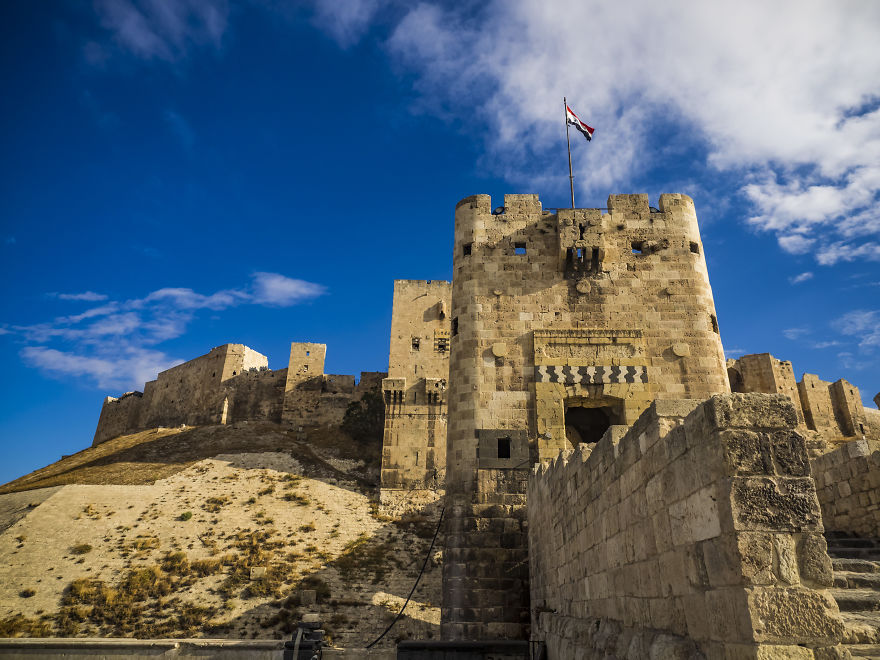 Aleppo Citadel ป้อมปราการในยุคกลางที่ตั้งอยู่ในเมืองอะเลปโป ทางตอนเหนือของประเทศซีเรีย