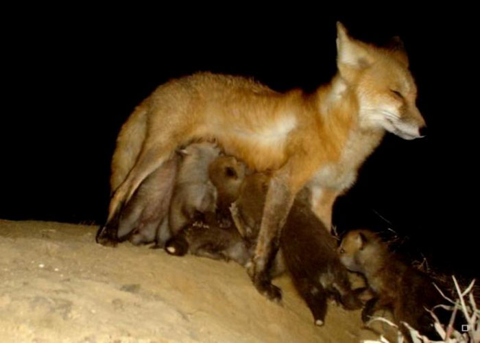9. แม่จิ้งจอก กำลังโชว์ป้อนนมให้กับลูกน้อยทั้ง 8 ตัว