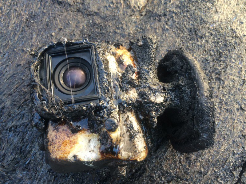 ผมขอเล่าเรื่องราวเมื่อลาวาหลอมละลายลุกไหม้ GoPro ของผม (พร้อมที่อยู่อาศัย) และมันก็ติดไฟ" พายุบอก PetaPixel "ผมใช้ค้อนหินธรณีวิทยาเพื่อดึงมันออกจากลาวาและคิดว่ามันเป็นความสูญเสียทั้งหมด