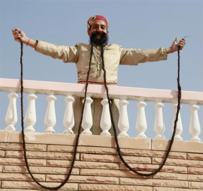 นี่คือ นายราม ซิงห์ ชายชาวอินเดียวัย 62 ปี ผู้ครองสถิติหนวดยาวที่สุดในโลก บุนทึกสถิติอย่างเป็นทางการโดยกินเนสส์ เวิลด์ เรคคอร์ด ด้วยความยาวของหยวดที่ 5.6 เมตรหรือกว่า 18.5 ฟุต นายรามนั้นเป็นชาวเมืองชัยปุระ เริ่มไว้หนวดมาตั้งแต่ปี 2513 ไม่เคยตัดเลยแม้แต่ครั้งเดียว ตลอดระยะเวลาหลายสิบปี กระทั่งปี ค.ศ. 2010 เขาก็ได้รับการบันทึกสถิติจาก กินเนสส์ เวิลด์ เรคคอร์ด ให้เป็นคนที่หนวดยาวที่สุดในโลกอย่างเป็นทางการ