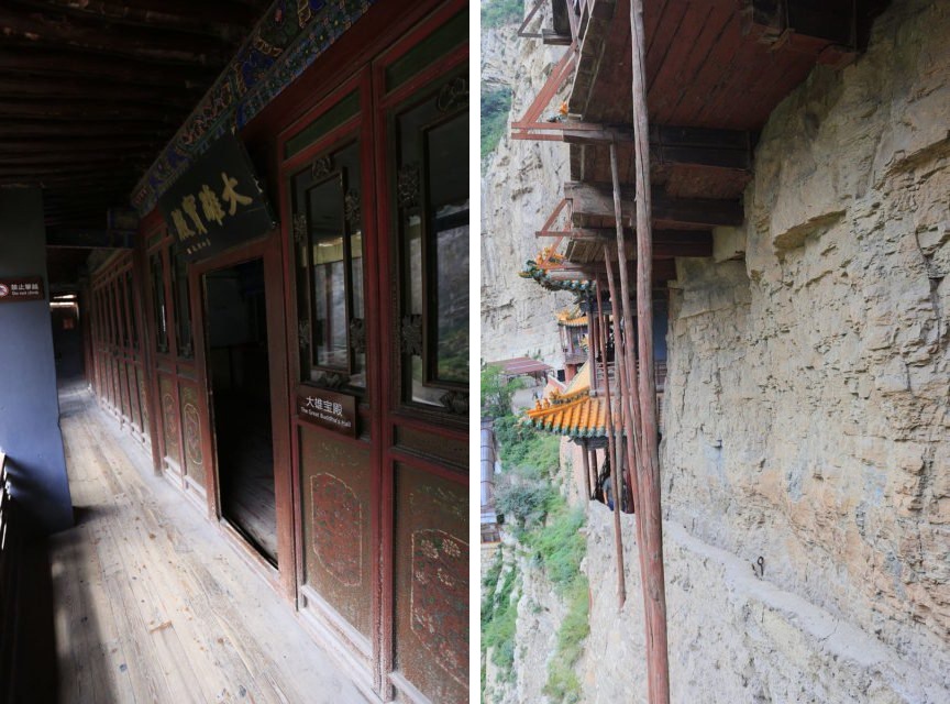ในวิหารแขวนที่ยาวกว่า 300 เมตรนี้ ประกอบไปด้วยห้องโถงกว่า 40 ห้อง และแบ่งออกเป็น 2 ฝั่งด้วยสะพานเชื่อมตรงกลาง โดยในแต่ละห้องจะมีการตกแต่งด้วยเทวรูปต่างๆ มากมาย ซึ่งหนึ่งในนั้นก็คือพระพุทธรูปของพระโคตมพุทธเจ้า ขงจื๊อ และ เล่าจื๊อ ซึ่งจะอยู่ทางห้องโถงฝั่งด้านเหนือ