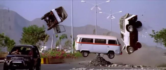 ดูเหมือนว่าผู้กำกับหลายคนจะชื่นชอบในการสร้างฉากที่มีรถยนต์บินได้ราวกับโลกนี้ไม่มีแรงโน้มถ่วง ไม่ว่าจะเป็นฉากรถบัสที่พุ่งข้ามสะพานที่ยังสร้างไม่เสร็จ หรือฉากที่รถชนกันแล้วลอยขึ้นไปบนฟ้า ฉากเหล่านี้ทำให้คนดูตื่นเต้นได้มากทีเดียวเชียว