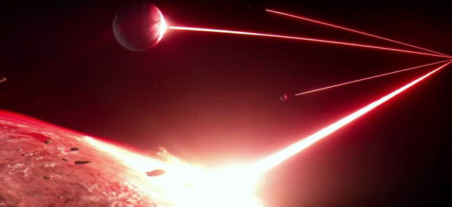 ความเป็นจริง: เลเซอร์จะไม่มีทางที่จะเรืองแสงได้เลย โดยเฉพาะอย่างยิ่งในอวกาศที่ไม่มีอนุภาคในอากาศที่จะสะท้อนมันออกมาให้เห็นได้