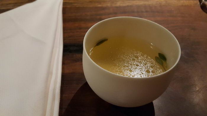 “นี่คือสุดยอดชาที่ล้ำเลิศที่สุดเท่าที่ฉันเคยทานมาในชีวิต ส่วนประกอบของมันมีต้นดักลาสเฟอร์, ยาร์โรว์, ดอกคาโมไมล์, เลมอนบาล์ม, โป๊ยกั๊ก และดอกฮิสซอฟ วัตถุดิบทั้งหมดสดจากฟาร์มของภัตตาคาร มาผสมรวมกันในน้ำเมเยอร์เลมอนร้อน”