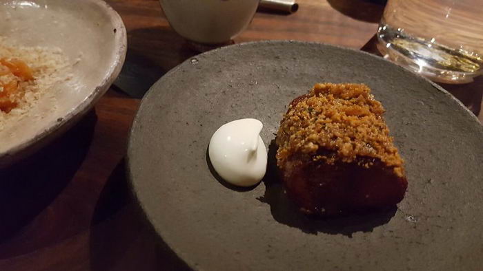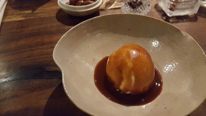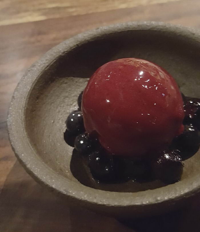 “พอเปิดไชเท้าออกมาก็เจอไชเท้าที่เป็นก้อนเหมือนเจลลี่ราดซอสบัลซามิก ซึ่งไชเท้าที่ฝานบางกับหั่นเป็นก้อนจะถูกหมักน้ำส้ม มันสดมากๆ มีรสเปรี้ยว ทำให้ตัดกับรสชาติของเมนูก่อนหน้านี้”