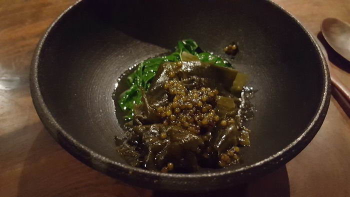 “ถัดไปเป็น เบบี้สปิแนช, สาหร่ายเคลป์คลุกน้ำมันเนย ราดด้วยไข่ปลาคาเวียร์”