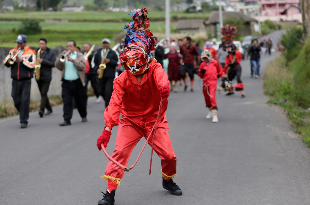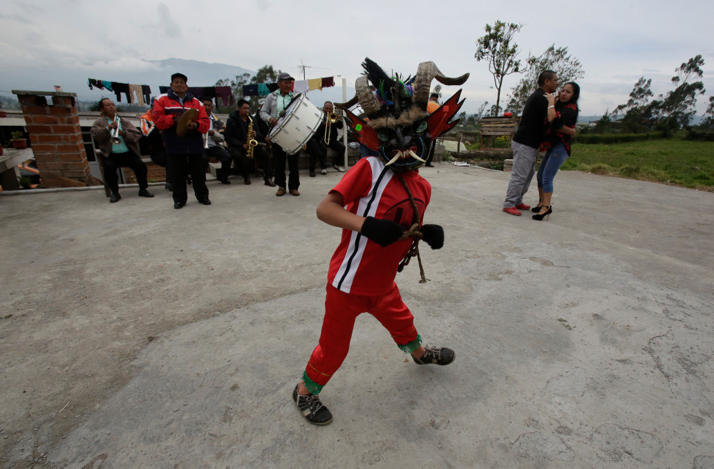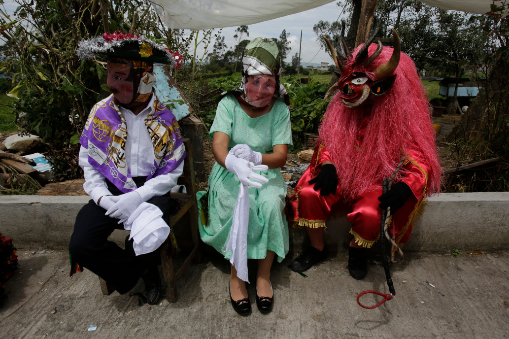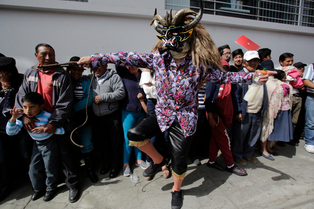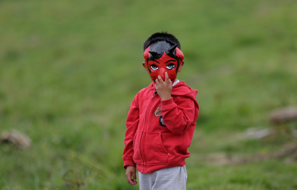 เด็กๆ ใส่หน้ากากในงาน "La Diablada" ในเมือง Pillaro ประเทศเอกวาดอร์
