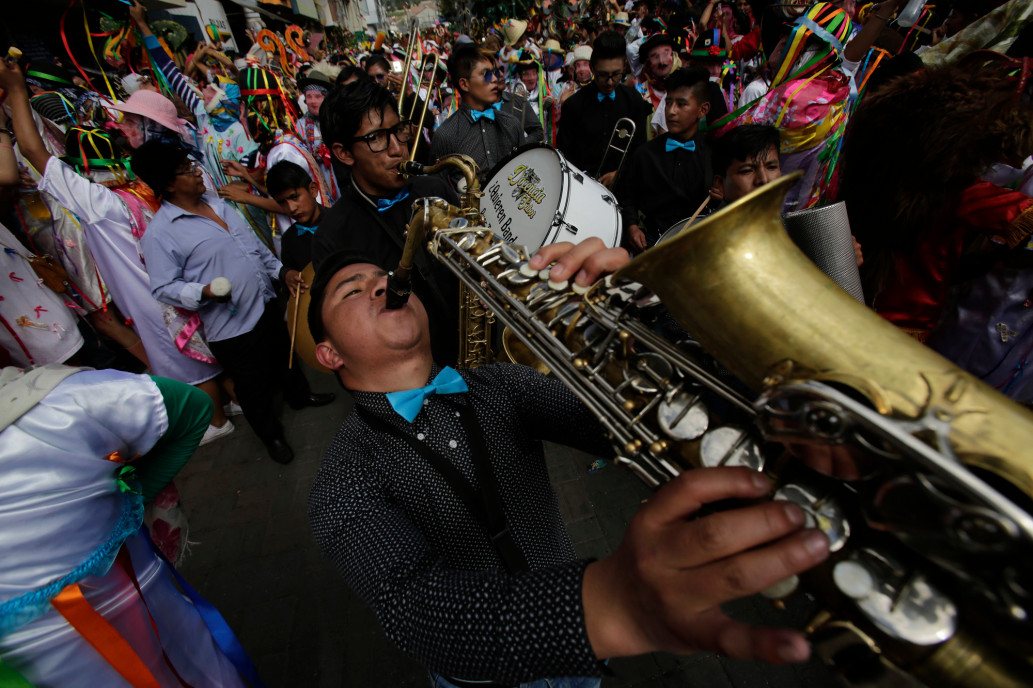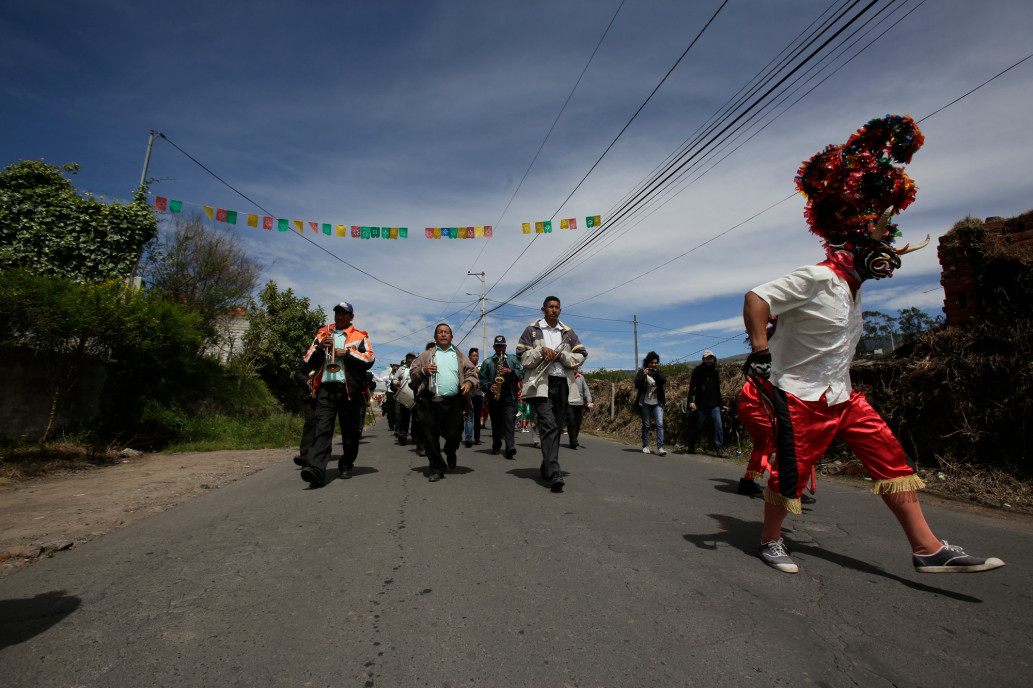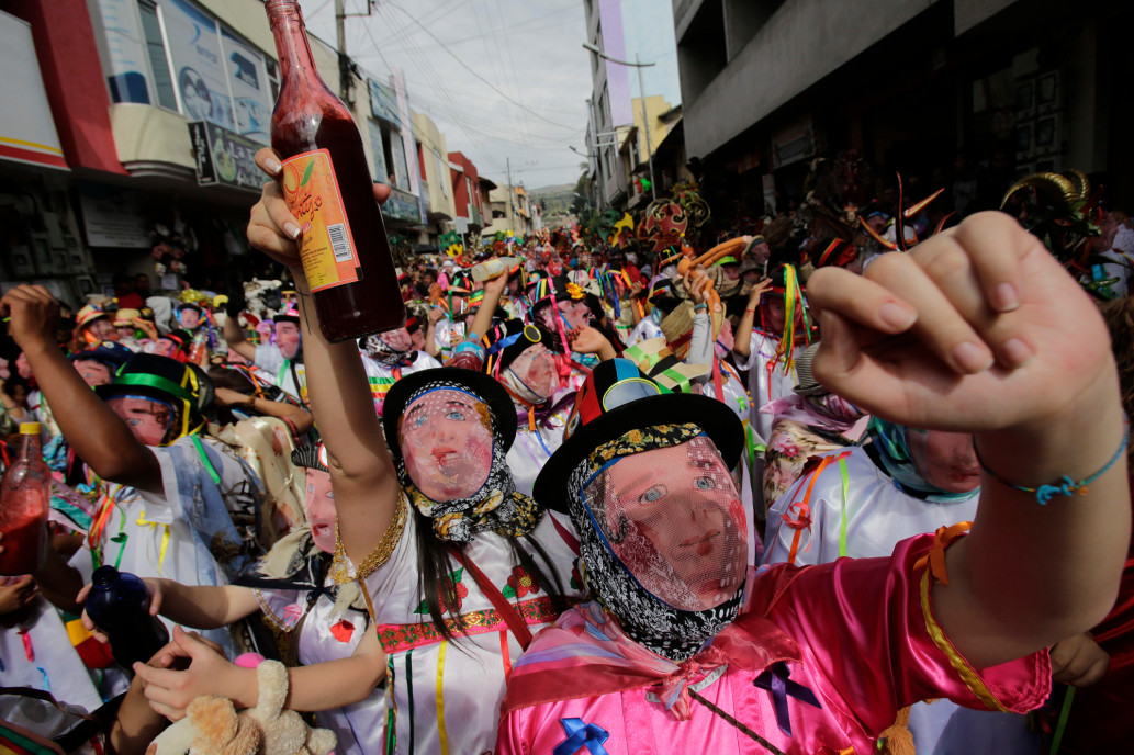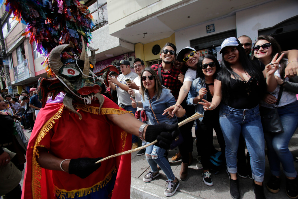 เด็กๆ ใส่หน้ากากในงาน "La Diablada" ในเมือง Pillaro ประเทศเอกวาดอร์