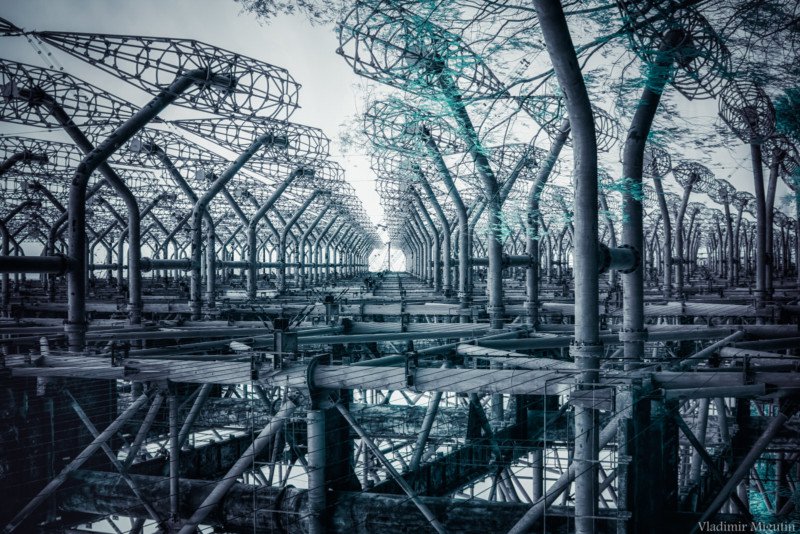 เกาะเชอร์โนบิล ที่ประเทศยูเครนรู้จักกันในอีกชื่อคือเมืองผี ที่ในอดีตเคยเกิดอุบัติเหตุโรงไฟฟ้านิวเคลียร์ระเบิด ทำให้เกาะนี้กลายเป็นเกาะร้างที่ไม่มีมนุษย์อาศัยอยู่เลย หลายปีก่อน Vladimir Migutin ช่างภาพผู้เดินทางรอบโลกกับกล้องอินฟราเรดของเขาก็ได้ไปเยี่ยมชมแดนอันตรายบนเกาะเชอร์โนบิล เขาบรรยายว่าได้ยินเสียงร้องจากธรรมชาติตลอดเวลา แสดงให้เห็นถึงความไร้ประโยชน์ของสิ่งก่อสร้างโดยมนุษย์ที่ถูกธรรมชาติทวงคืน กลายเป็นซากปรักหักพัง