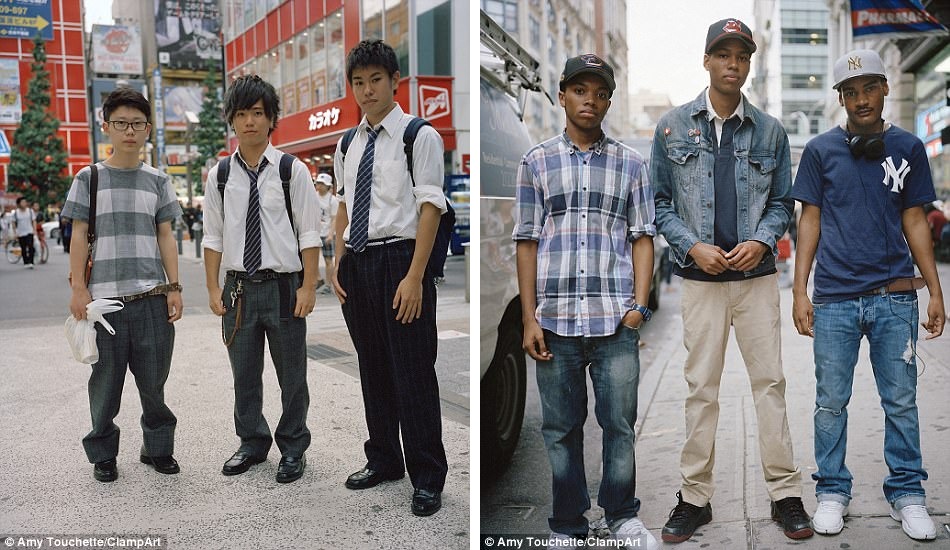 ช่างภาพสาวเล่าว่า ภาพถ่ายของวัยรุ่นจากสถานที่ต่างๆ เหล่านี้ทำให้เธอเข้าใจถึงวิถีชีวิตและสิ่งที่เป็นภัยคุกคามกับพวกเขา ซ้าย: กลุ่มเด็กชายจากญี่ปุ่นที่กำลังเดินทางกลับบ้าน ขวา: กลุ่มวัยรุ่นจากนิวยอร์ก