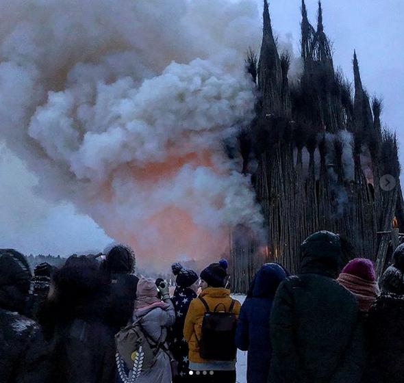 ในทุกๆ ปีทางสวนศิลปะ Nikola-Lenivets ใกล้ๆ กับกรุงมอสโก ประเทศรัสเซีย จะทำการเฉลิมฉลองเทศกาลอันเก่าแก่ที่เรียกว่า Maslevitsa ในทุกๆ ปีด้วยการเผาสิ่งก่อสร้างที่สร้างขึ้นจากไม้ ซึ่งปีนี้พวกเขาก็ไม่พลาดที่จะทำแบบเดิมเช่นกัน Nikolay Polissky ผู้ก่อตั้งและคิดค้นการเผางานศิลป์ขนาดใหญ่ยักษ์นี้ก็ได้บอกว่า ปีนี้พวกเขาได้สร้างโบสถ์โกธิกสูงกว่า 30 เมตรขึ้นมา โดยเขาได้ใช้ทีมงานกว่า 20 คนช่วยกันสรรค์สร้างผลงานสุดเจ๋งที่ใครดูแล้วก็ต้องอึ้ง