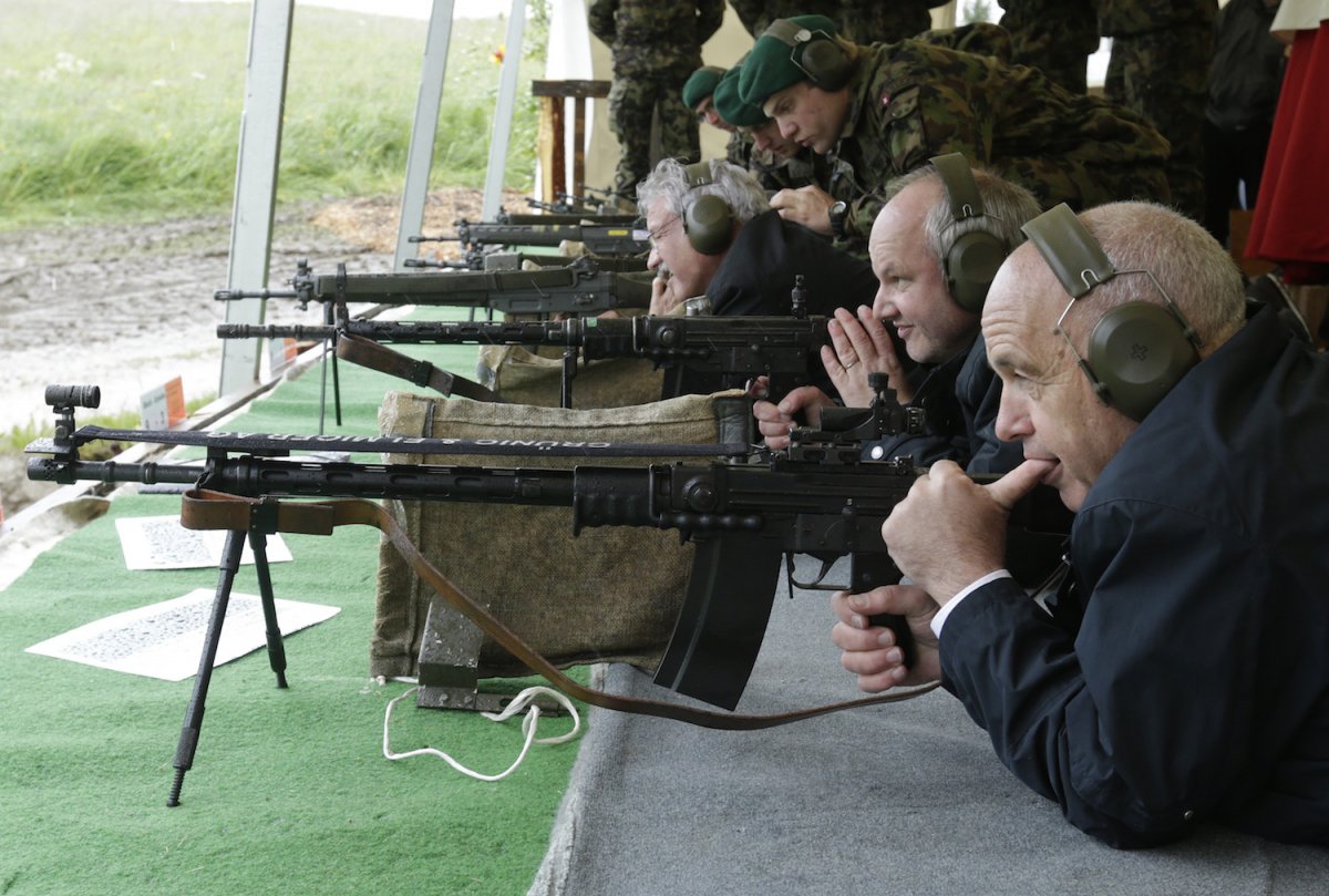 ยิ่งไปกว่านั้น ผู้ชายในประเทศตั้งแต่อายุ 18 ถึง 34 ปียังต้องเข้ารับการฝึกใช้ปืนตามข้อกฎหมายอีกด้วย โดยเหตุที่ต้องเข้ารับการฝึกก็เพื่อให้ประชาชนทุกคนสามารถที่จะป้องกันเหตุร้ายและเข้าช่วยปฎิบัติงานต่างๆ ได้ทันที ยิ่งไปกว่านั้นหลังผ่านการฝึก ผู้ฝึกสามารถเก็บปืนที่ใช้ฝึกไว้กับตัวได้ทันที ยังไม่หมดเท่านั้น ในปี 2000 ได้มีการออกสำรวจและถามประชากรในประเทศเกี่ยวกับเหตุผลของของการมีปืน ซึ่งกว่า 25% ของประชากรตอบว่า พวกเขาจะมีและใช้ก็ต่อเมื่อเข้าปฎิบัติหน้าที่ในฐานะตำรวจหรือทหารเท่านั้น กลับกันในอเมริกามีเพียง 5% ที่ตอบในทำนองเดียวกัน