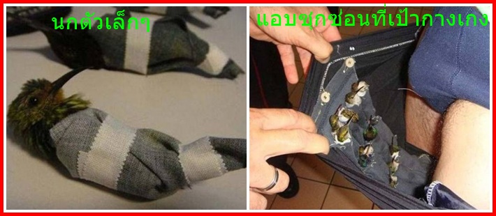 ที่มา http://www.dailymail.co.uk/news/article-2042474/Traveller-arrested-trying-smuggle-live-HUMMINGBIRDS-special-pouches-sewn-pants.html